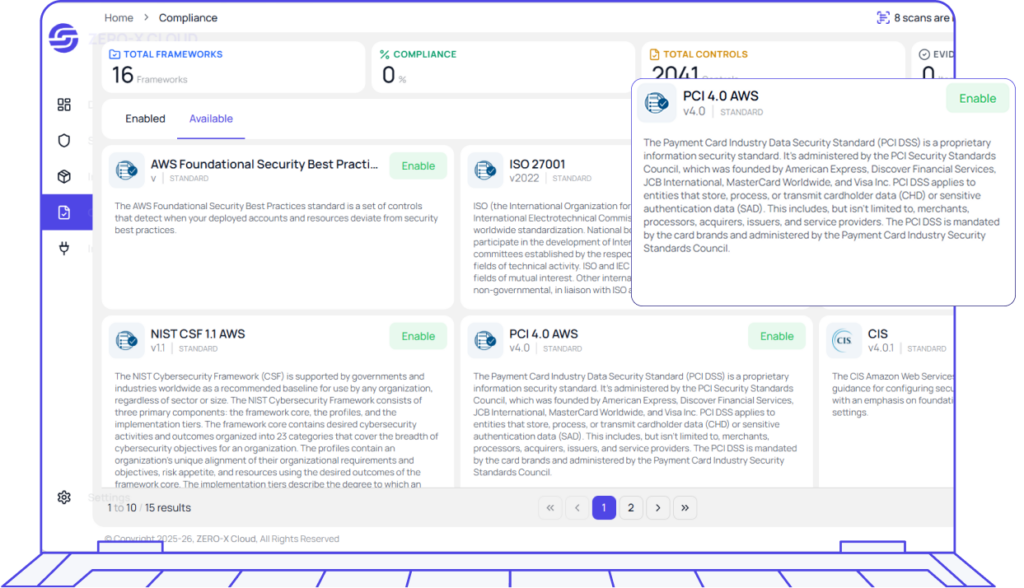 Yes. Zero-X maps findings against industry standards like CIS, PCI, ISO, NIST and many more generates advanced reporting and analysis.